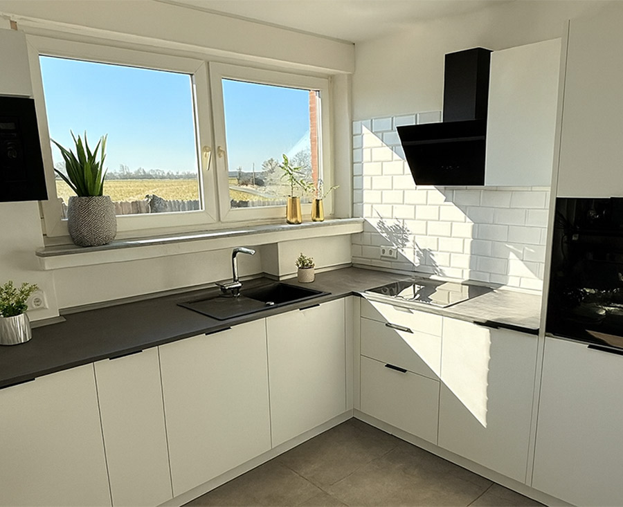 Wir von Küchenpixel bieten verschiedene Küchen an: In L-Form oder mit Kochinsel passen unsere Küchen gut in offene Wohn- und Essbereiche. Daneben realisieren wir auch U-Form-Küchen, die besonders ambitionierten Koch-Fans mit viel Arbeitsfläche entgegenkommen – genauso gibt es Küchenzeilen, mit denen wir kleine Wohnungen ausstatten.